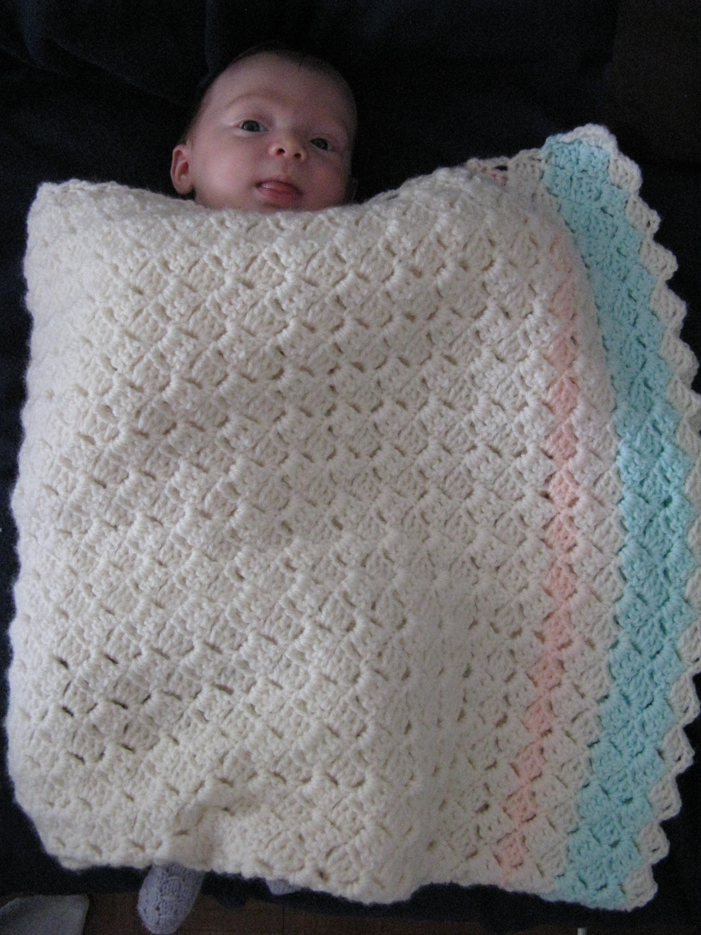 Ceci est une couverture que la mère d’une collègue à mon papa m’a offerte (oui, oui, la mère d’une collègue) ! Et elle l’a faite elle-même, comme Mami.
