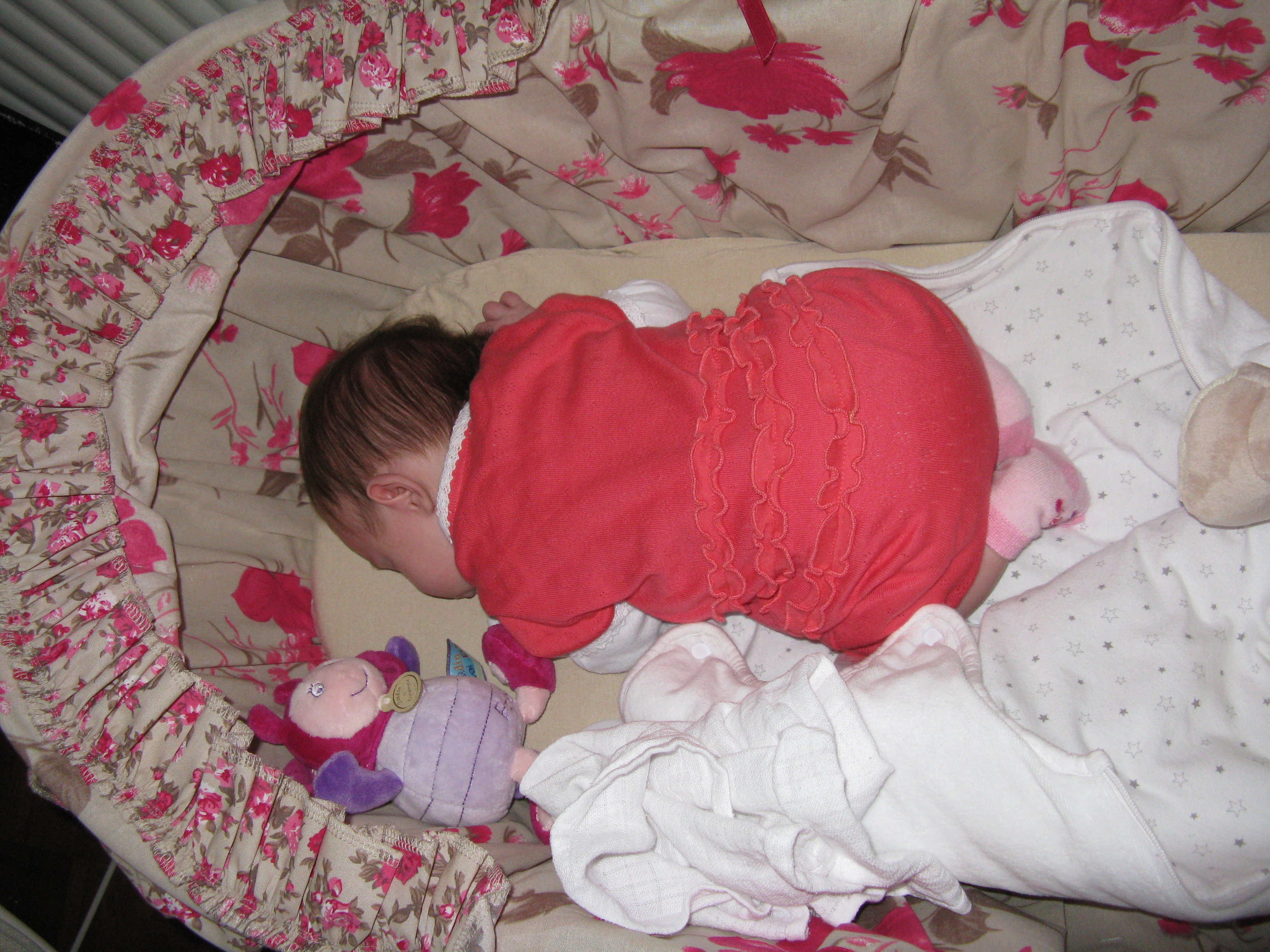 Aujourd’hui, je suis super sage et mes coliques sont maîtrisées car maman a trouvé la solutions: me laisser dormir sur le ventre. (attention, sous surveillance constante!)