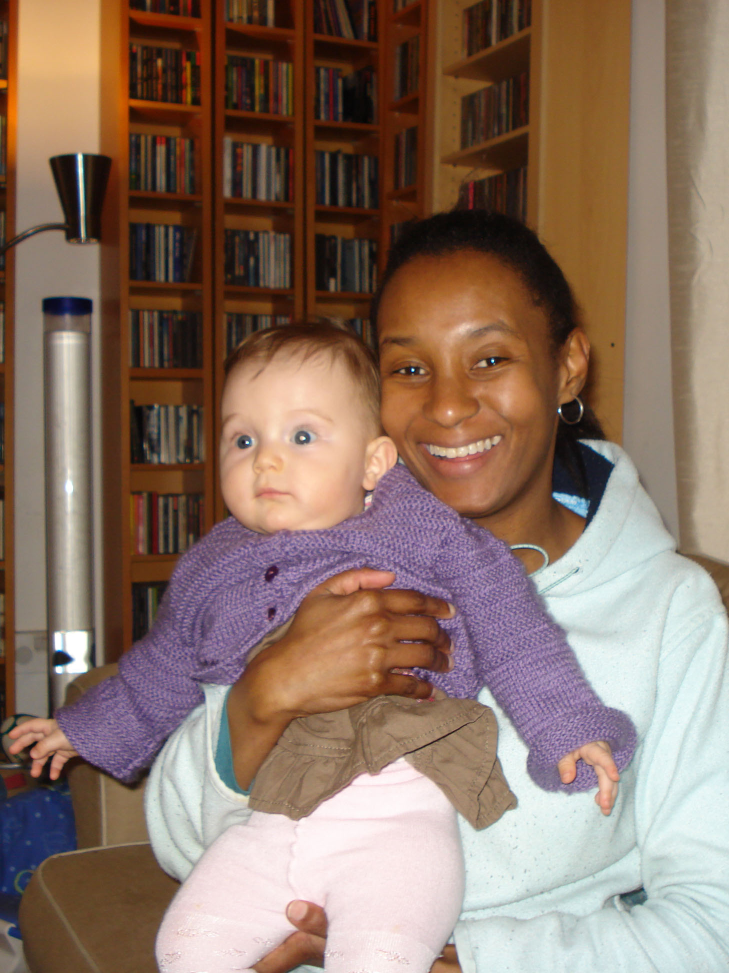 Depuis le temps que vous en entendez parler, voici enfin une photo de Paula (prononcez PaOla), ma nounou. Elle est super gentille, s’occupe très bien de moi et tout et tout… Elle est rigolotte en plus et elle parle beaucoup!