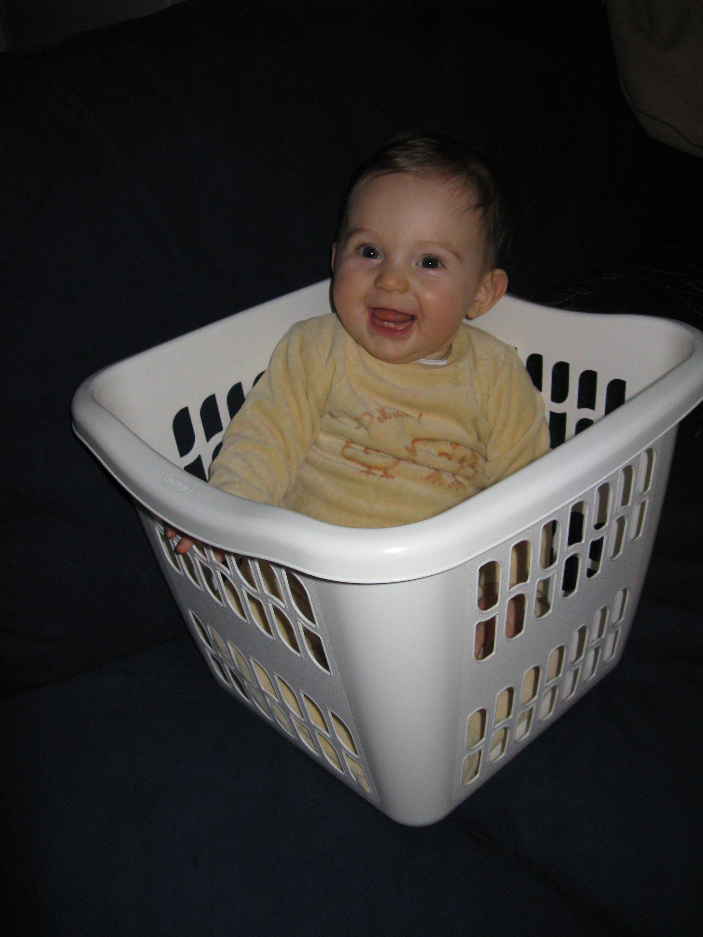 Vous vous souvenez surement de la photo (cf. Le linge) où je jouais dans le panier à linge de maman… Et bien voilà une photo plus récente!