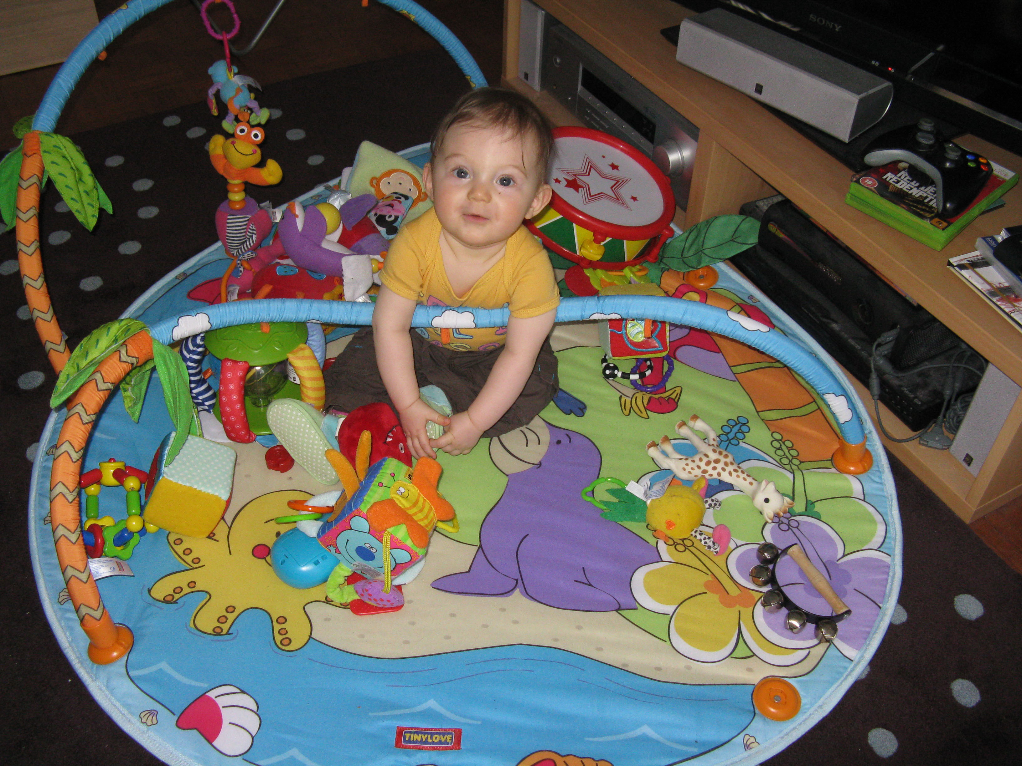 C’est pas trop fatiguant et ça permet de se déplacer un peu afin d’attraper des objets que je n’ai, paraît-il, pas le droit de toucher ! 😉