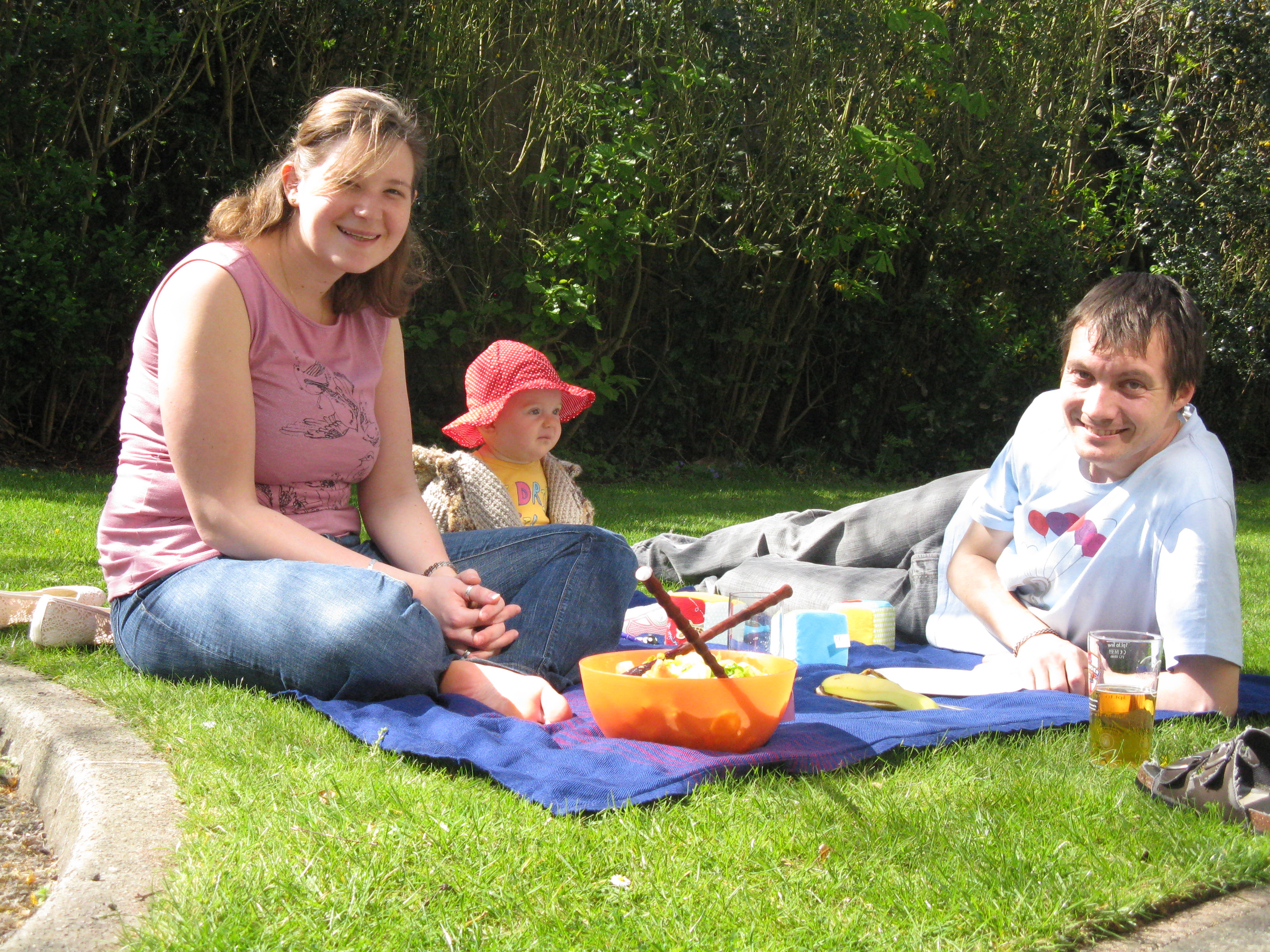 Comme il faisait beau le WE dernier, nous avons mangé sur le gazon devant la maison. C’était rigolo de manger par terre.
