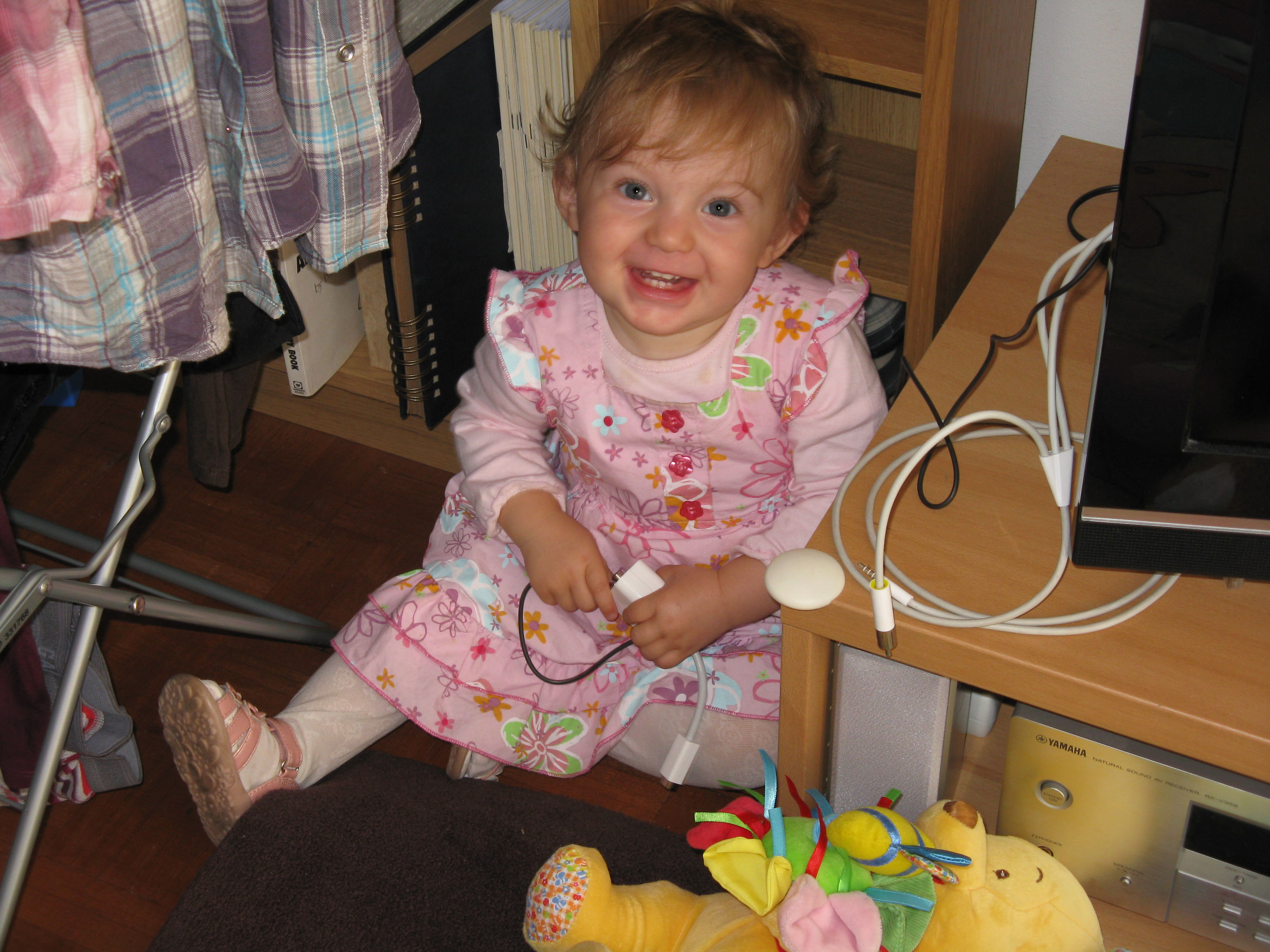 Ces derniers temps je joue à cache cache dans les jambes de Papa et Maman, je tente de passer entre, je joue à faire coucou! C’est drôlement rigolo!