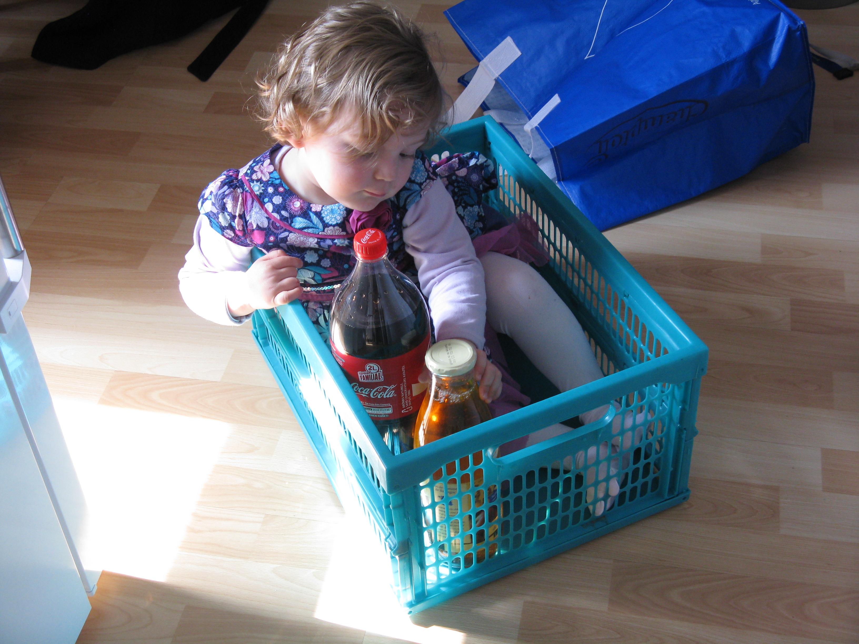 Quand on rentre des courses j’aime bien aider papa et maman à sortir les paquets des sacs, à jouer dans la caisse…etc.