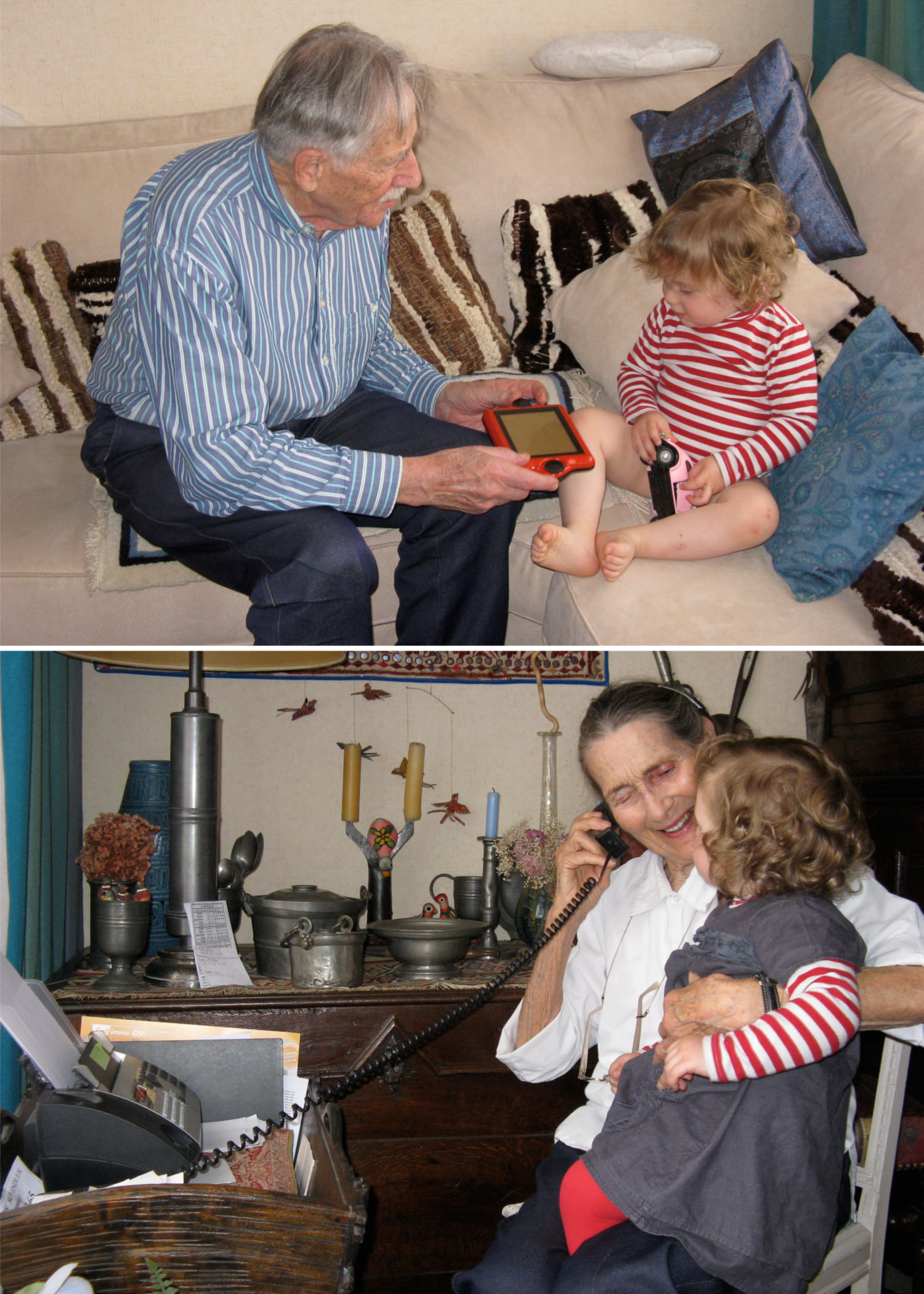 Kinou a joué avec moi en faisant des dessins avec la boîte magique et Colette m’a passé le téléphone, mais je n’ai pas compris qui c’était qui parlait…