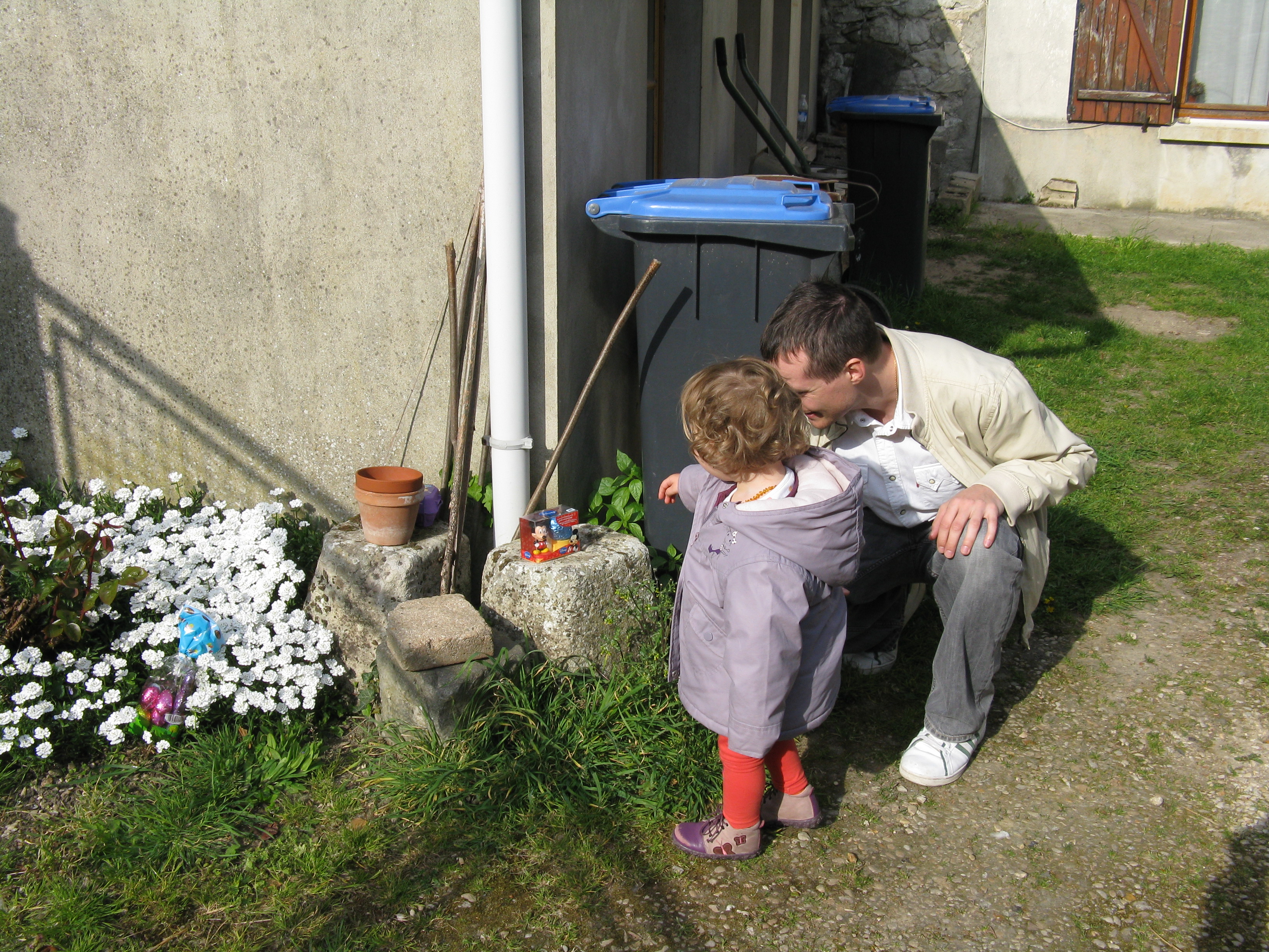 Il paraît que les cloches sont passées chez Papi Raveton et qu’elles ont caché des chocolats dans le jardin ! Bizarre, mais c’était bien rigolo.