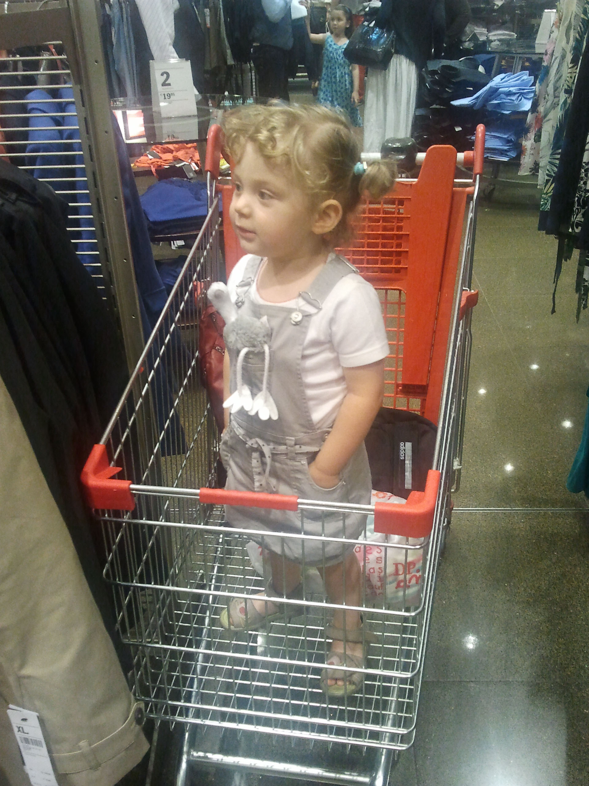 Me voilà en course avec Papa et Maman pour faire les « SOLDES ».