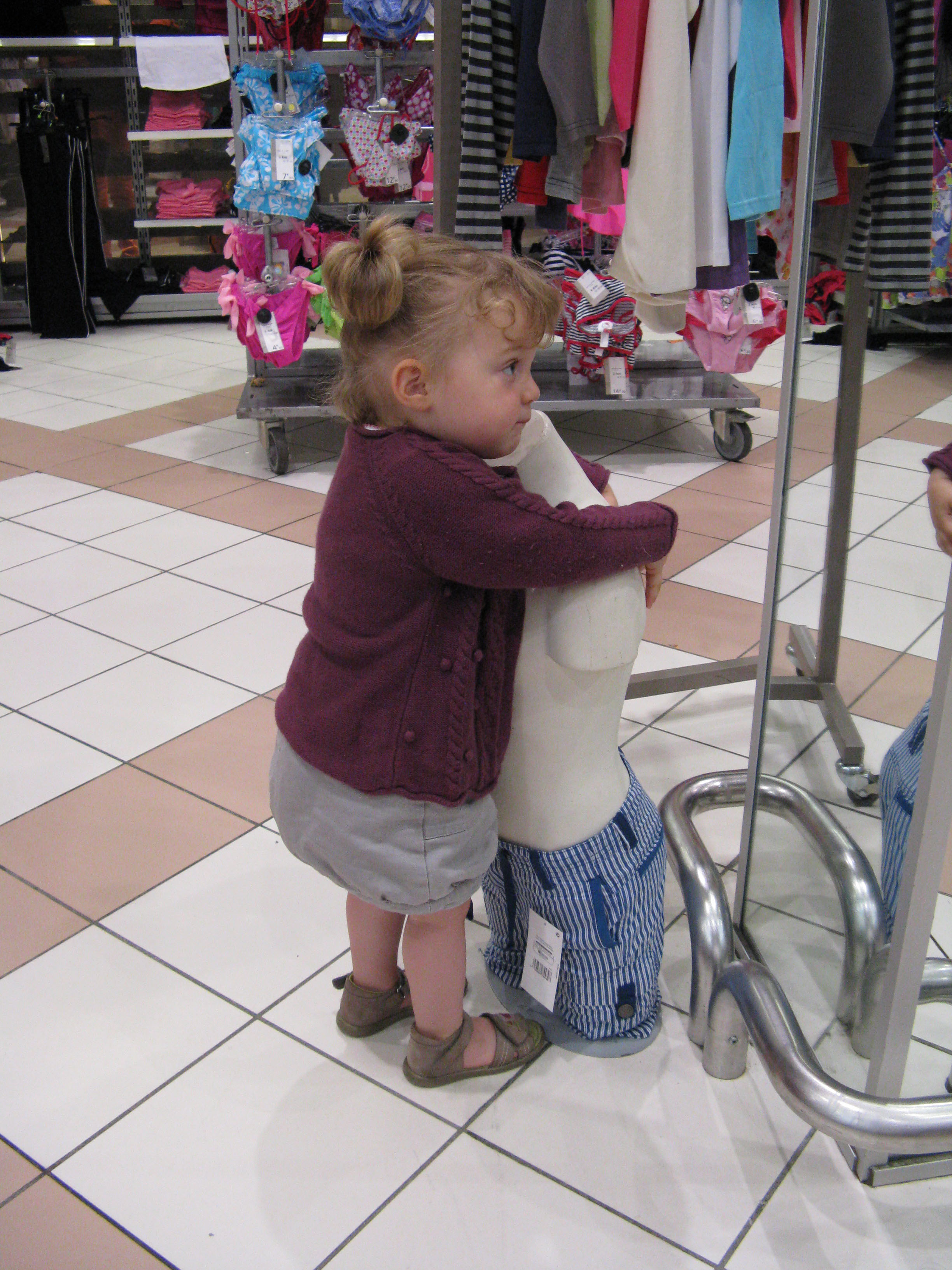 Je lui ai fait des câlins pendant que Maman me choisissait de nouveaux vêtements.