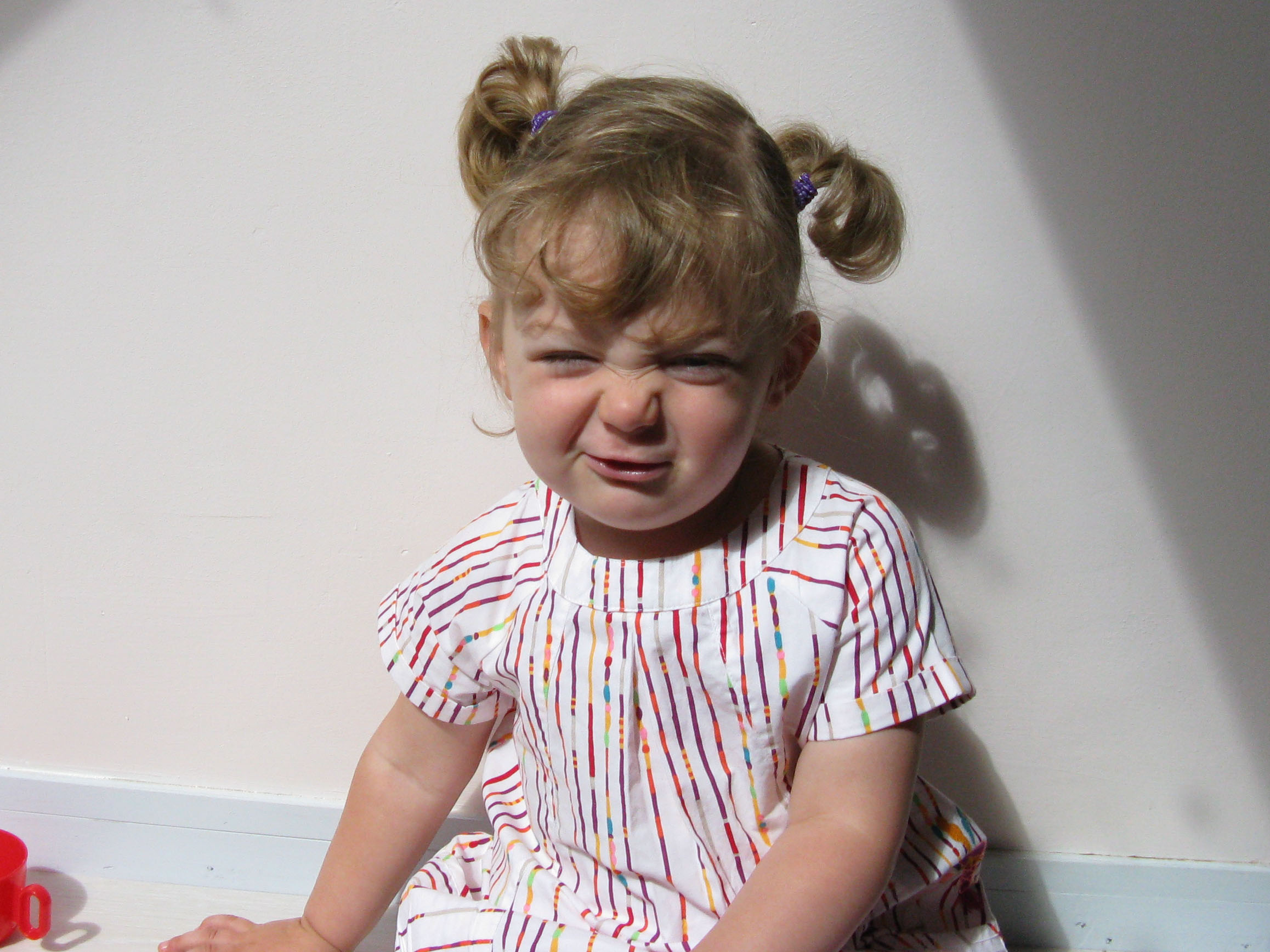 Papa : « Eléa, fais un sourire pour la photo s’il te plait. »