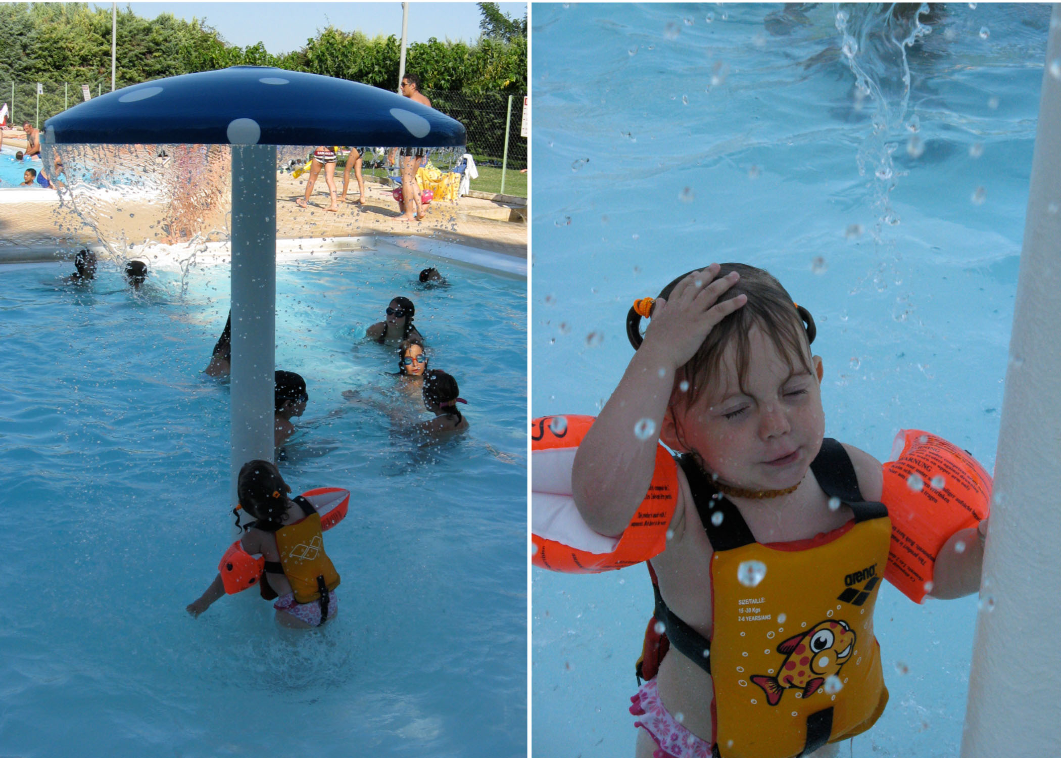 Toujours en vacances dans le Sud, nous n’avions pas toujours une piscine à côté de la maison. Nous sommes donc allé à la piscine municipale et il y avait un drôle de champignon qui pleuvait.