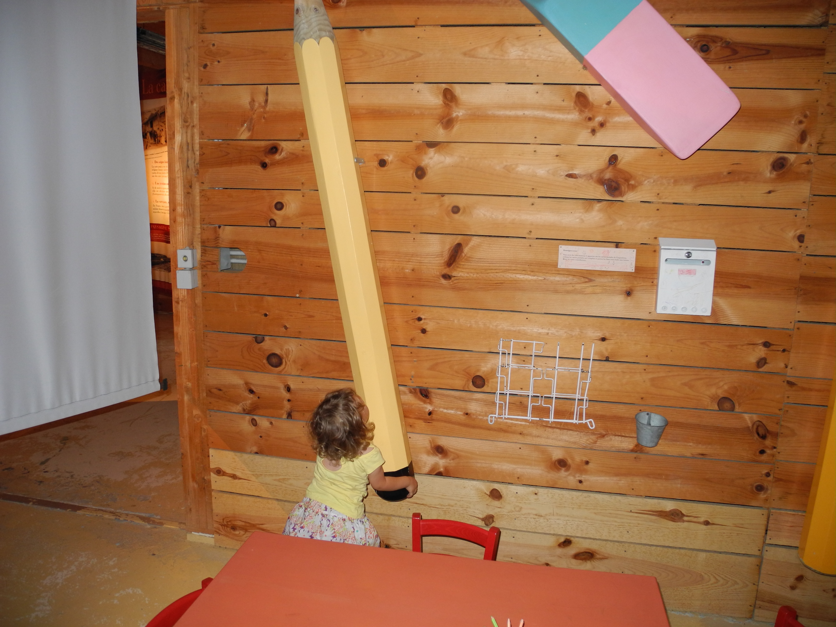 A l’écomusée, il y avait un énooooorme crayon, j’ai tenté de le prendre pour dessiner, mais il voulait pas se décoller du mur!
