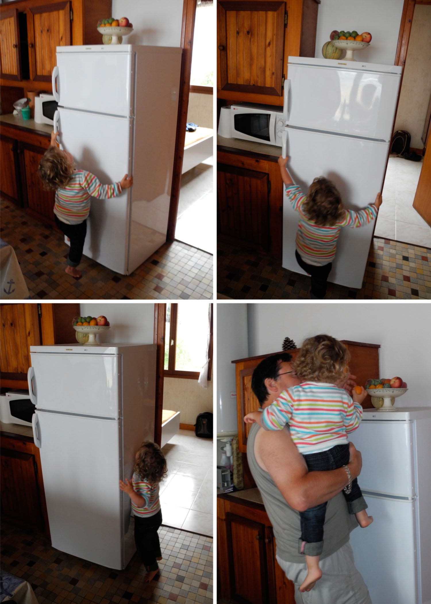 Un abricot ? Ah oui, ils sont en haut du frigo ! Je vais en chercher un.