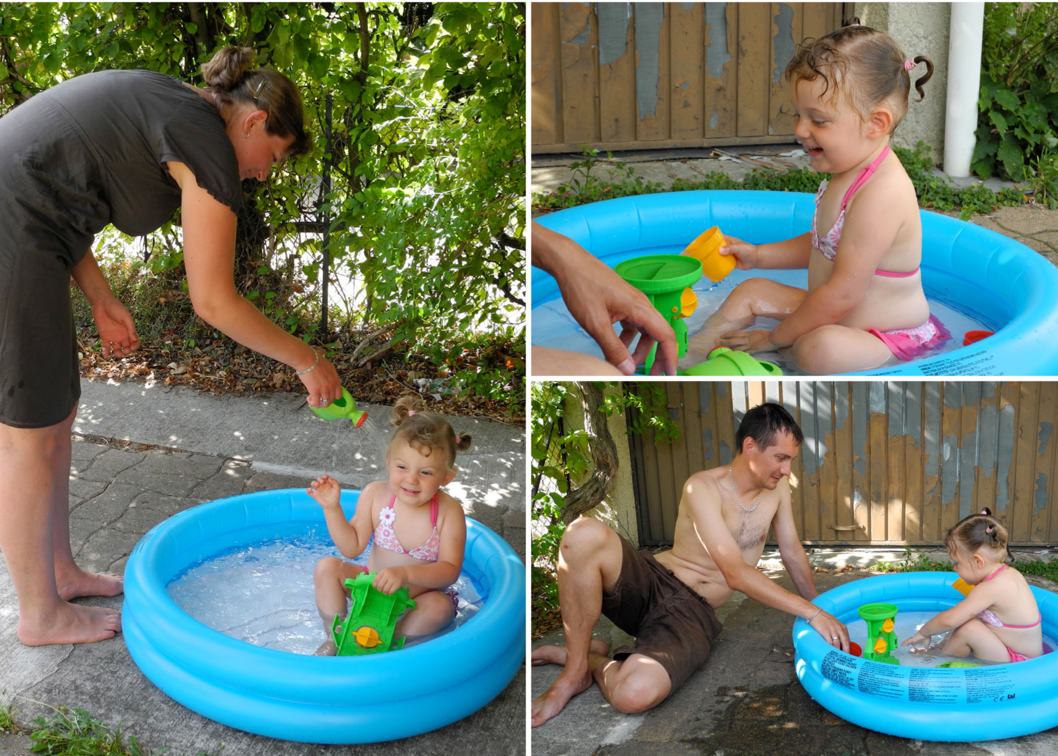 Le lendemain de notre retour de vacances, il faisait encore plus chaud qu’à la mer…alors maman m’a installé la piscine pour la première fois pour que je me rafraîchisse!