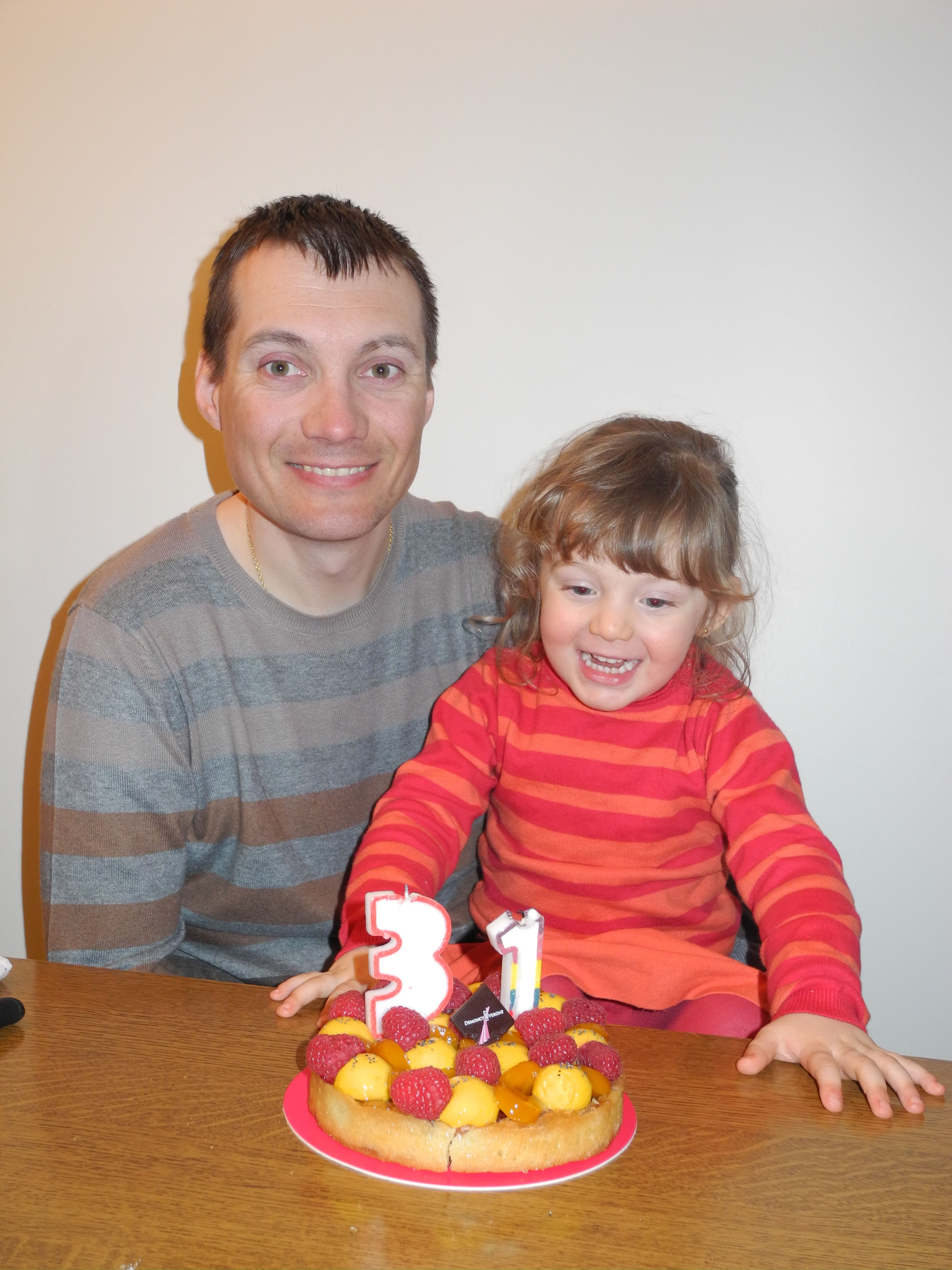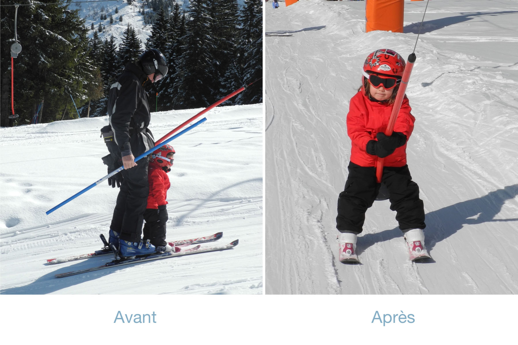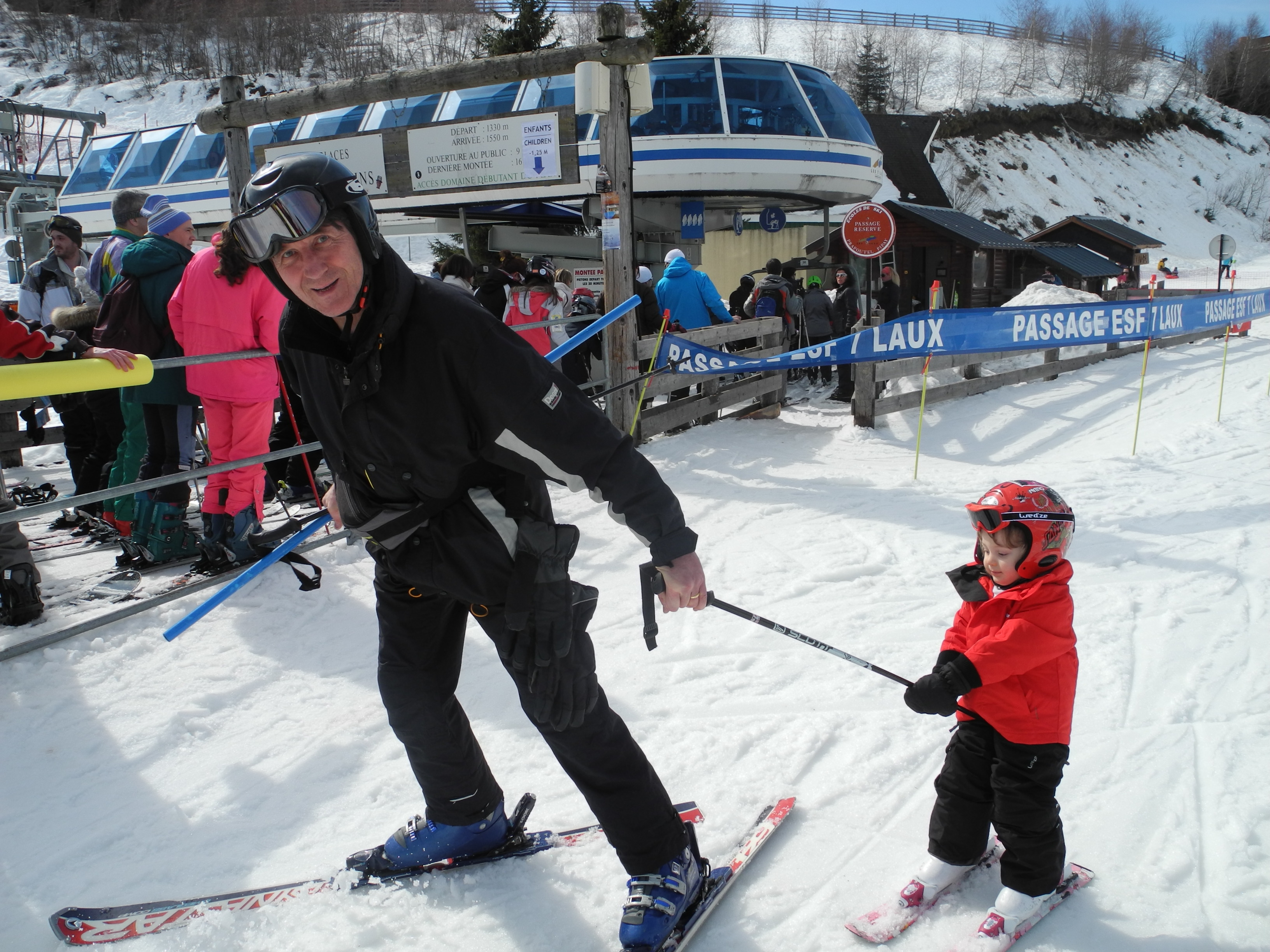 Bon d’accord, là c’est Papou qui me tire. Mais bientôt je saurais descendre les pistes toute seule !