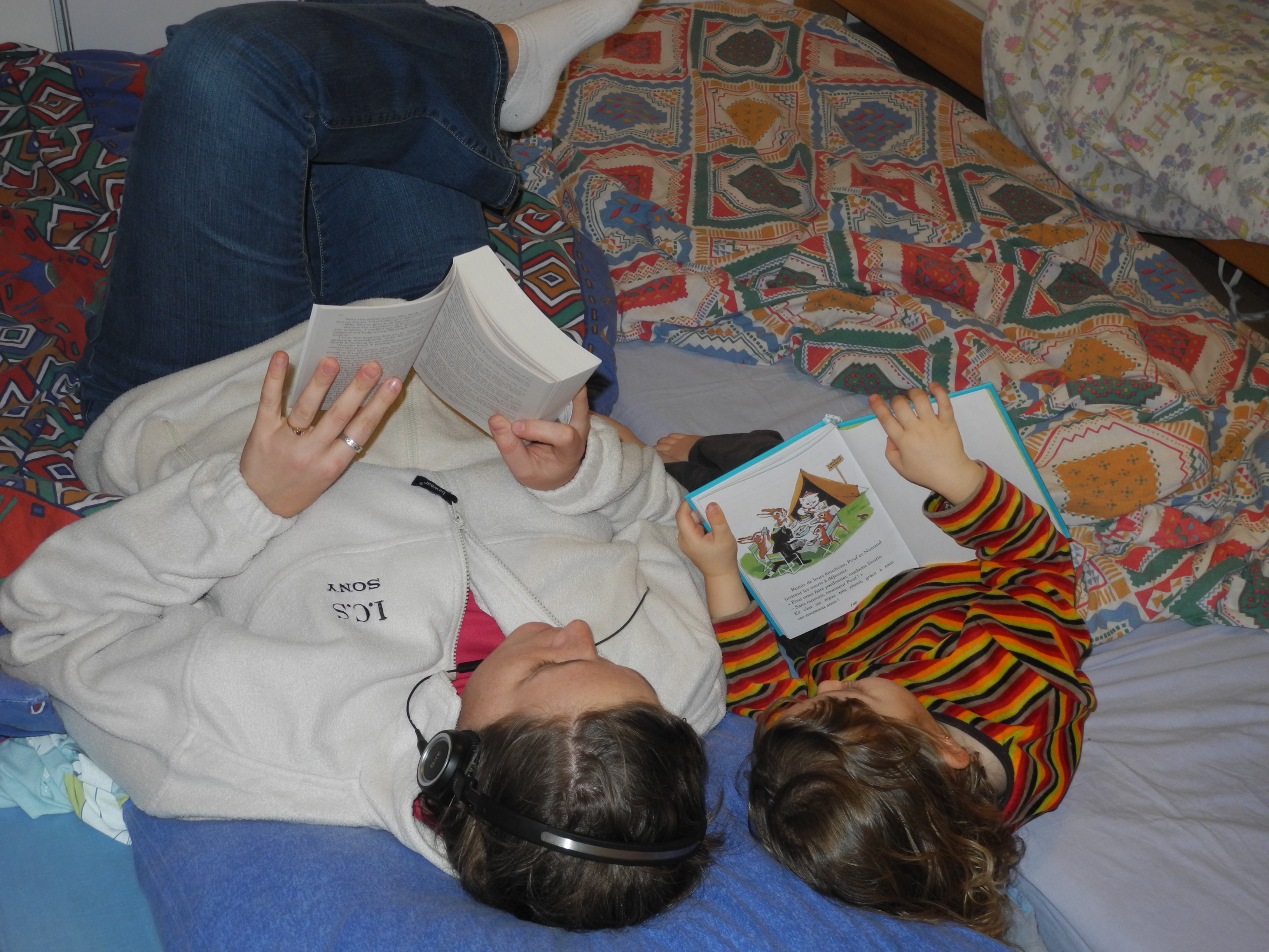 Après le ski toute la journée, la luge et les courses, on se reposait un peu, alors je faisais comme maman: je lisais mon livre!