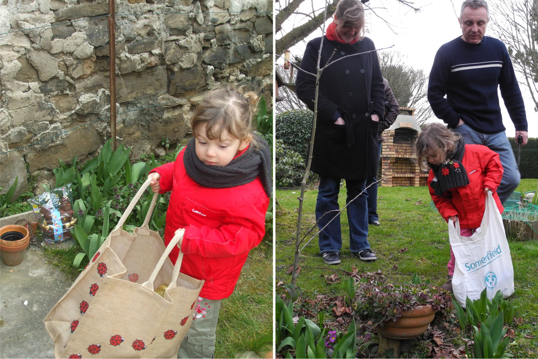 Les cloches ont déposé des oeufs dans les jardins de tout le monde. Du coup, j’ai pu aller en ramasser beaucoup, beaucoup.