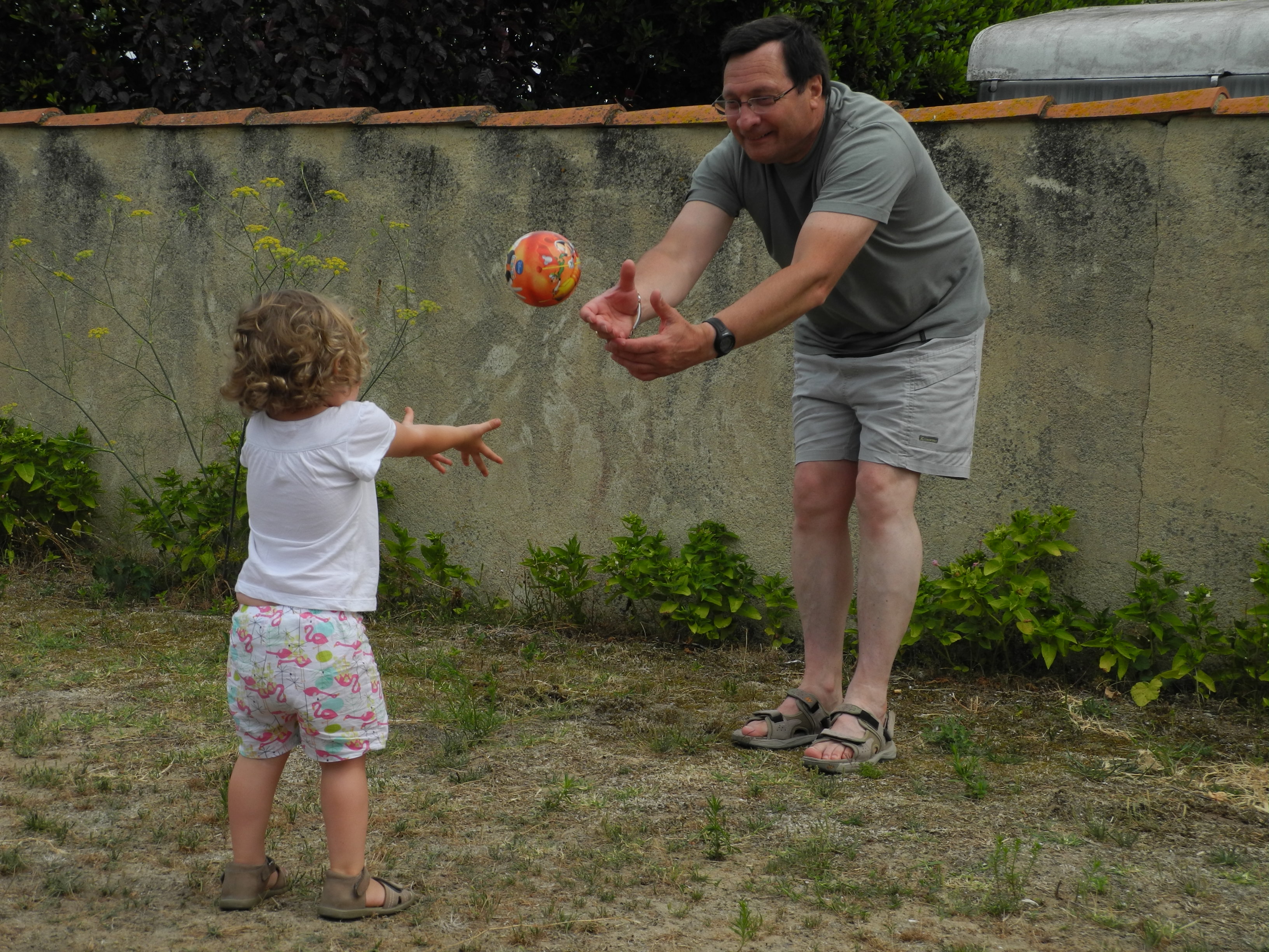 En vacances, on a acheté un p’tit ballon pour jouer sur la plage.