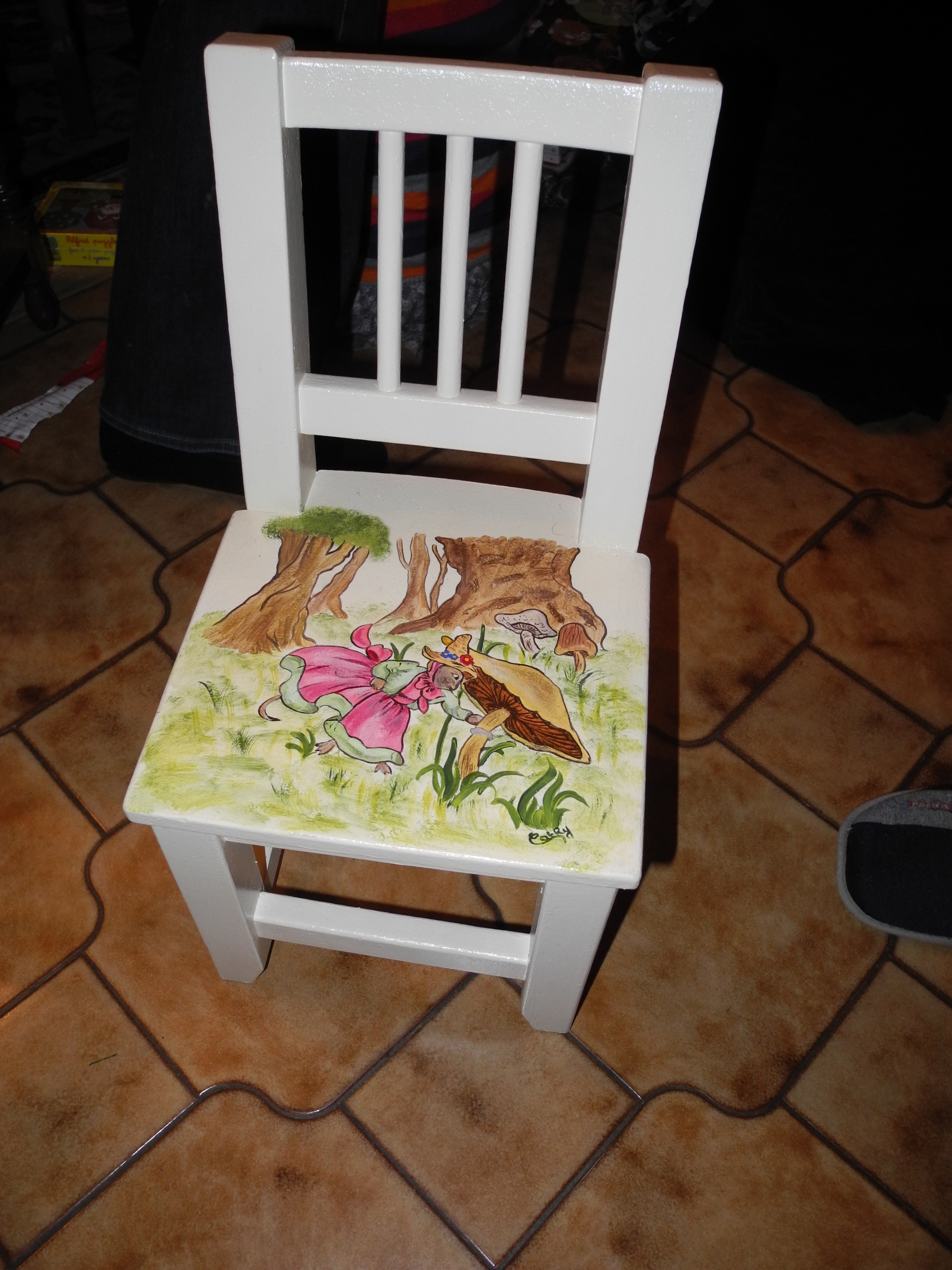 Le papa Noël de Tonton Fabien et Tata Anaïs m’a apporté une très jolie chaise. Il est allé la chercher chez Cathy Combeau car c’est elle qui fait ces jolies choses.