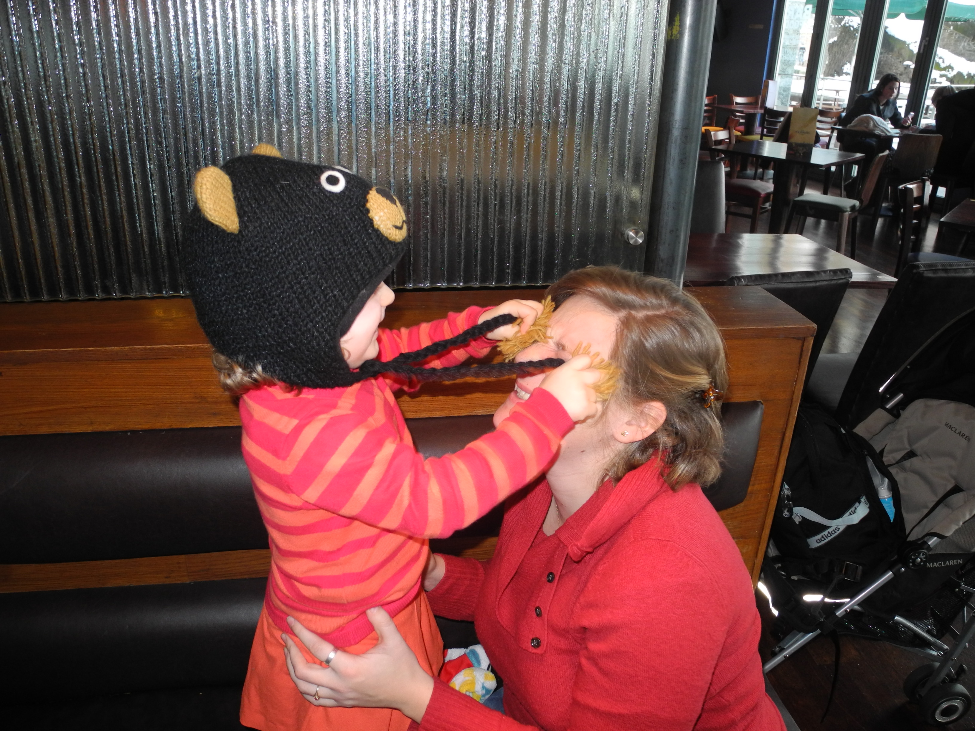 A Camden Town Market, Papa et Maman m’ont acheté un nouveau bonnet ! Il est drôlement rigolo, surtout avec les pompons car je peux chatouiller Maman ! ^^
