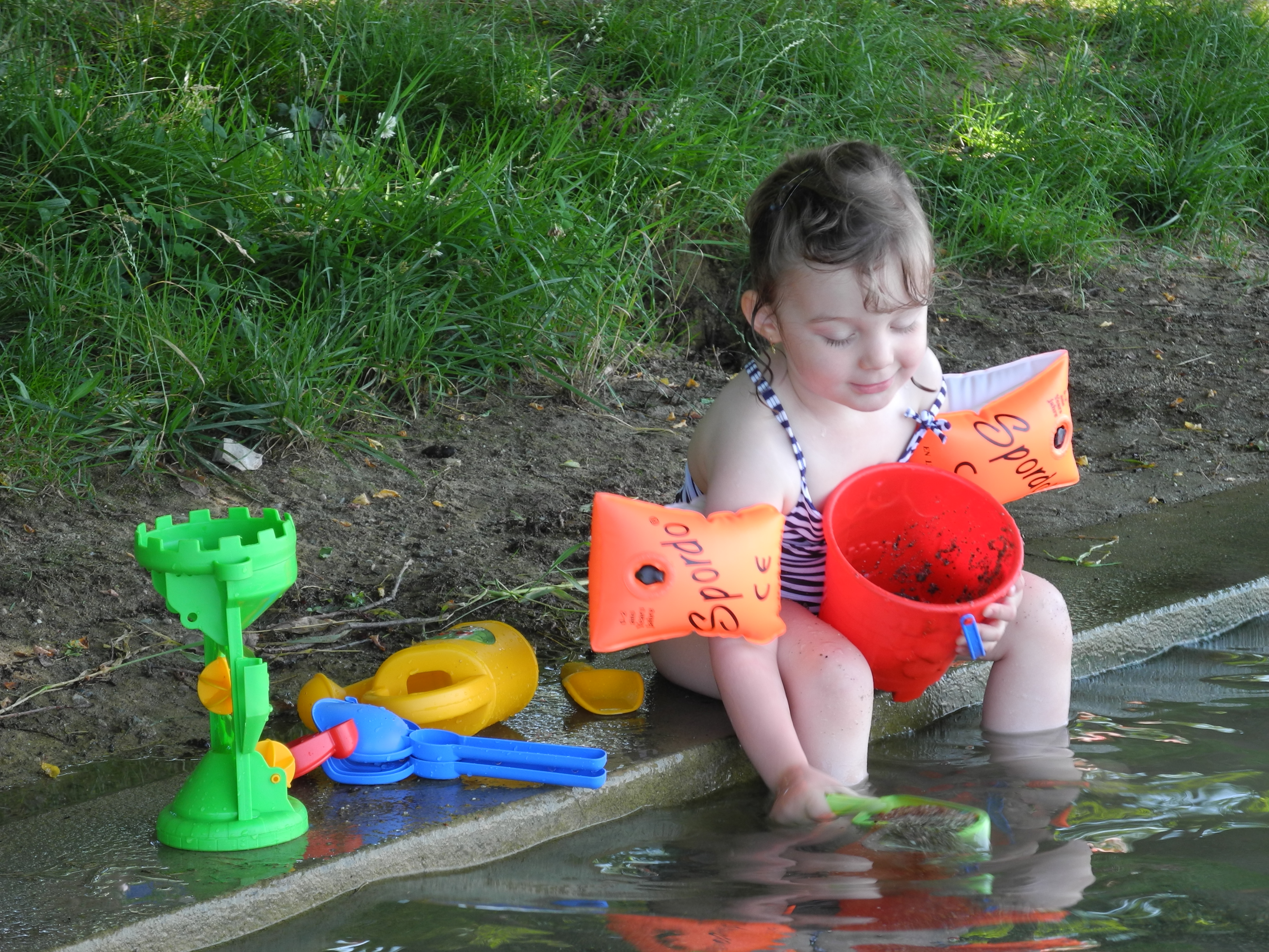 Avec Manu, on est allé au lac. C’est comme une petite mer. J’ai pu me baigner et jouer avec mes jouets, c’était drôlement bien !